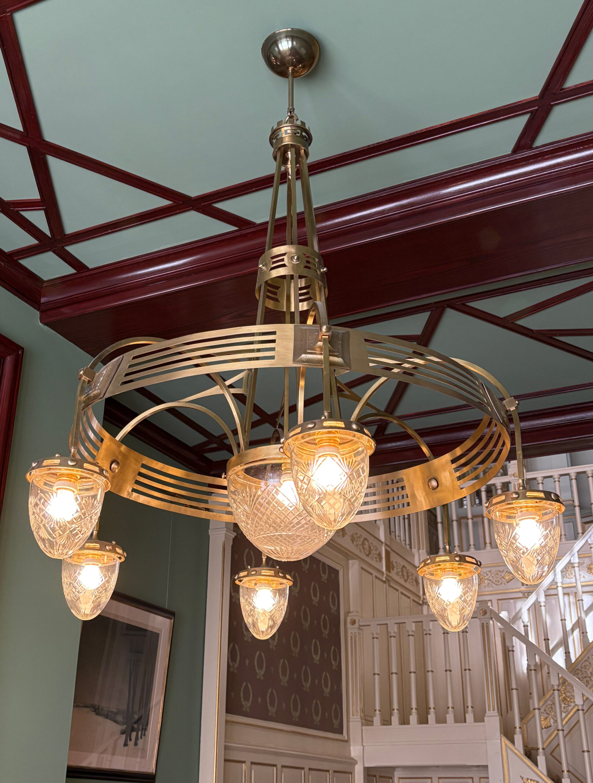 • Reproduction inspirée d’un lustre Serrurier Bovy, alliant tradition et précision artisanale.
