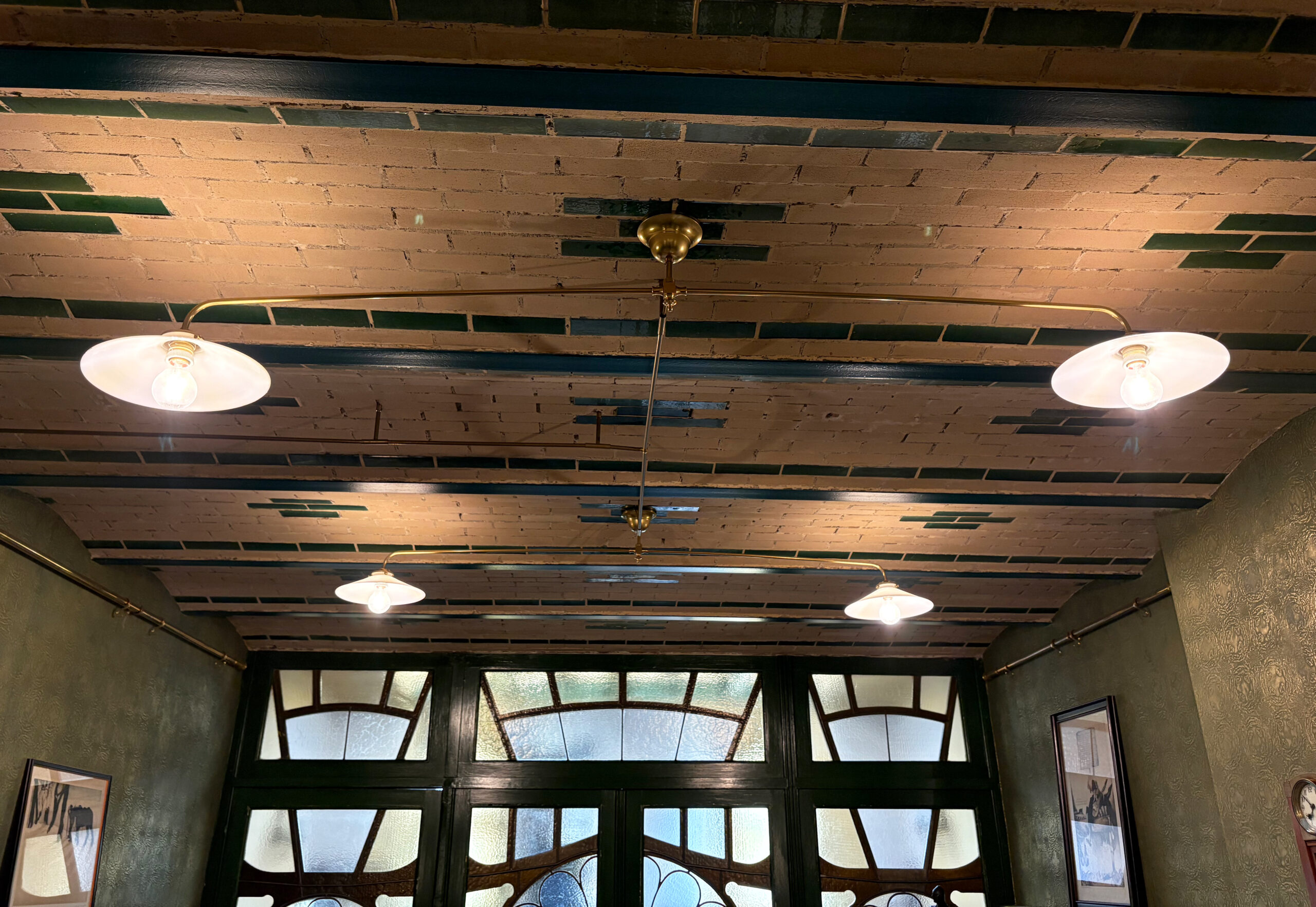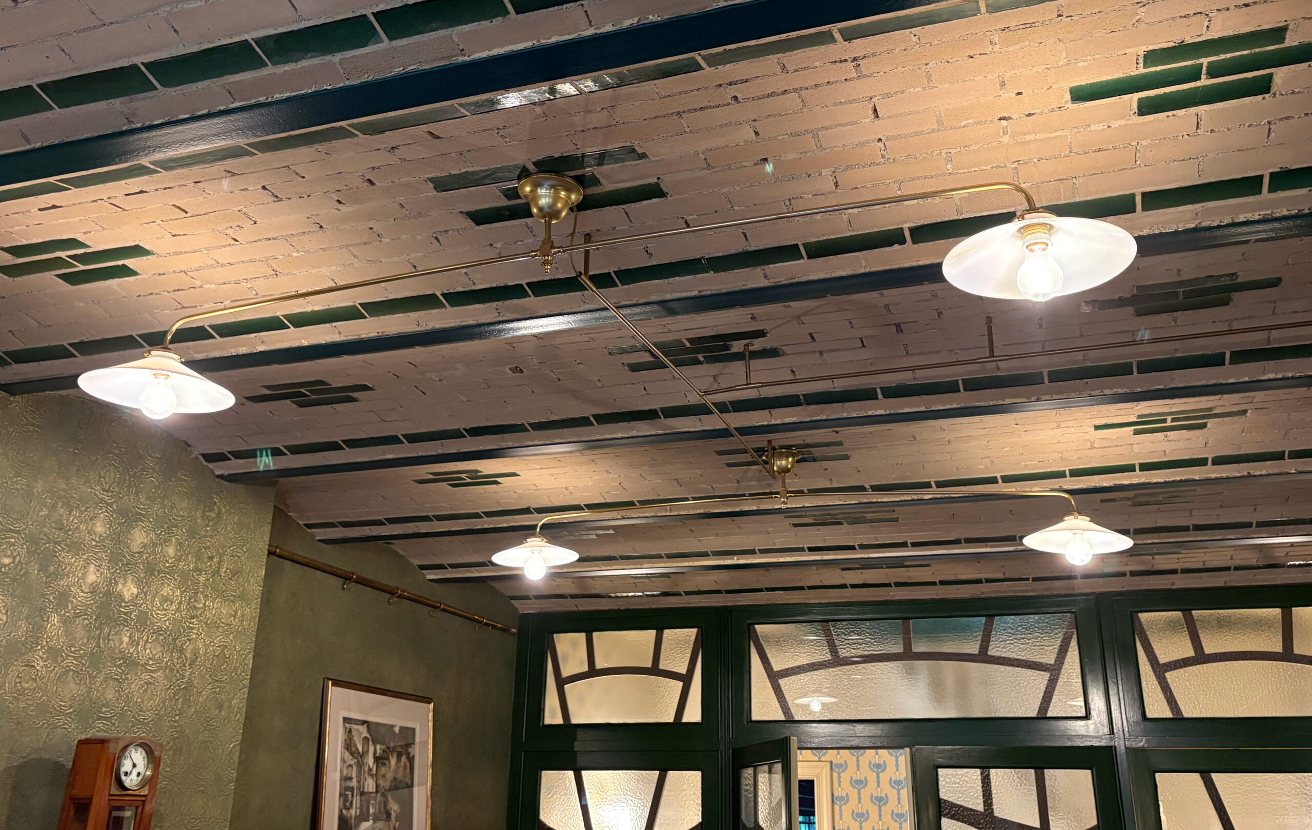 • Création d’un luminaire de style pour la cave, en tubage de laiton avec abat-jour opalin, respectant l’atmosphère du lieu.