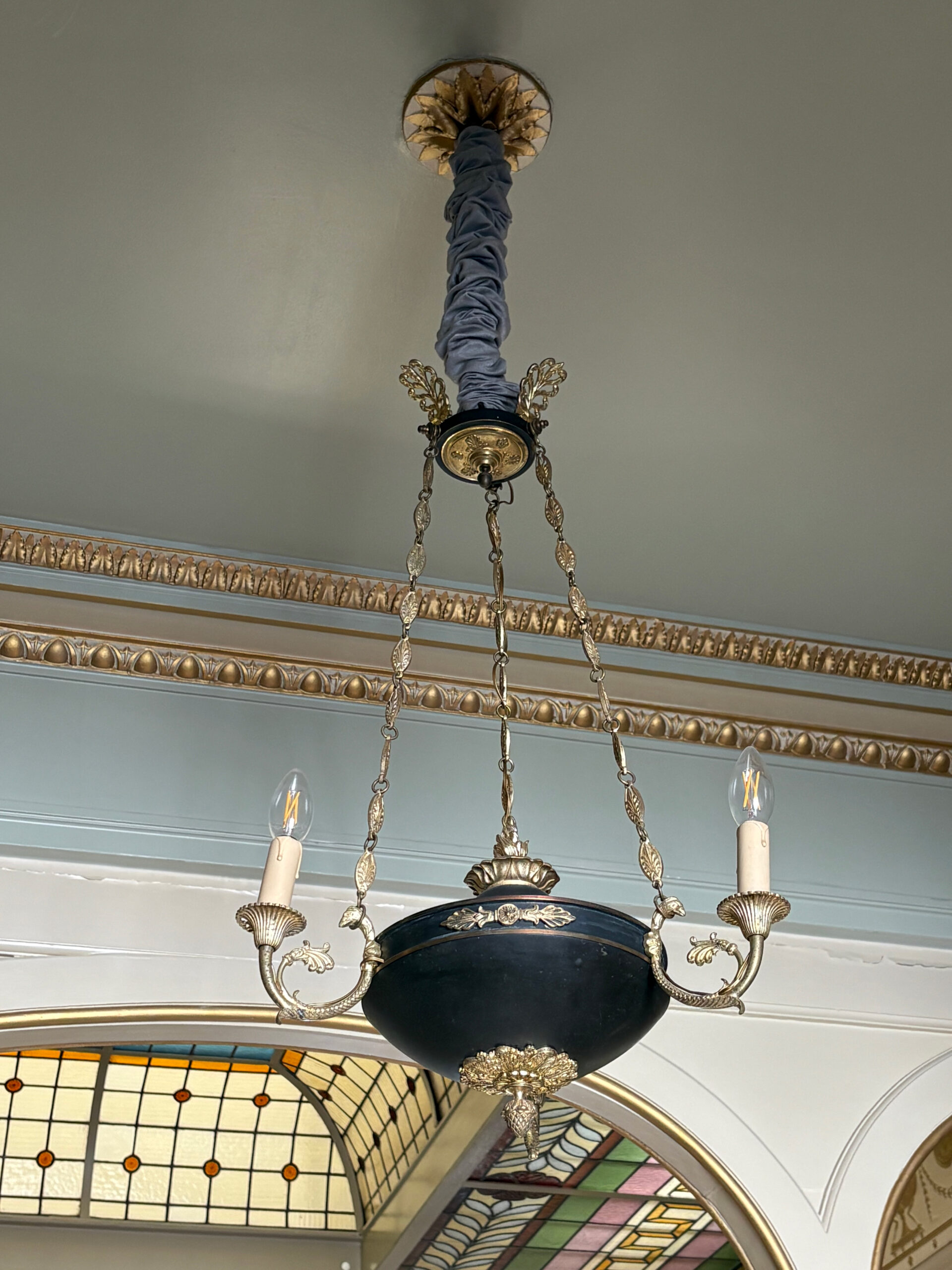 • Deux lustres hollandais remis à leur éclat d’origine.